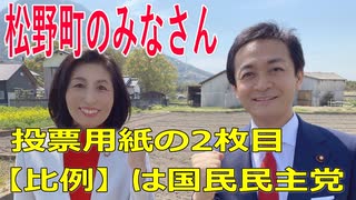 衆議院選挙2021・松野町の選挙区は「愛媛4区」比例四国・2枚目の投票用紙は「国民民主党」