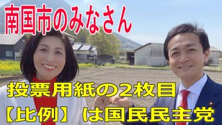 衆議院選挙2021・南国市の選挙区は「高知1区」比例四国・2枚目の投票用紙は「国民民主党」