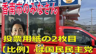 衆議院選挙2021・香南市の選挙区は「高知1区」比例四国・2枚目の投票用紙は「国民民主党」