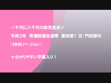 <千代に八千代の政見放送>令和3年 衆議院議員選挙 愛知県1 区:門田節代 (NHKバージョン)*分りやすい字幕入り