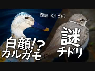 1018B②【顔白いカルガモ】謎チドリ…鶴見川で野鳥撮影。捕食ハクセキレイ。カルガモ部分アルビノ?イカルチドリ幼鳥?コガモとヒドリガモのエクリプス。野良猫 #身近な生き物語 #カルガモ #イカルチドリ