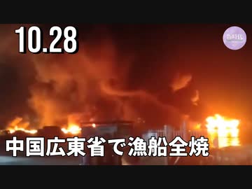 中国広東省で漁船全焼