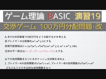 ゲーム理論BASIC 演習19 -交渉ゲーム 100万円分配問題・改-