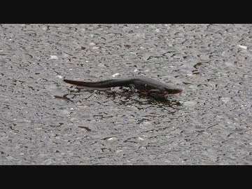 イモリが道路を渡る