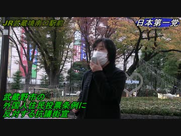 武蔵野市の外国人住民投票条例に反対する抗議活動 日本第一党 松川夕子 JR武蔵境南口 H3/11/21