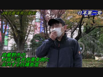武蔵野市の外国人住民投票条例に反対する抗議活動 日本第一党 博士 JR武蔵境南口 H3/11/21