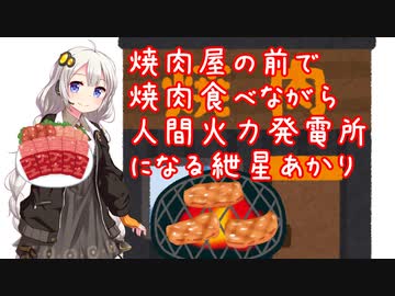焼肉屋の前で焼肉食べながら自分を人間火力発電所だと思う紲星あかり