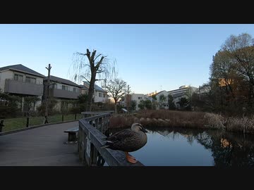 柵の上のカルガモ
