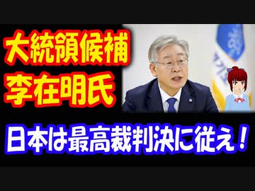 【韓国の反応】 大統領候補の 李在明氏 「日本政府は 最高裁の強制徴用賠償判決を 速やかに履行すべきだ」