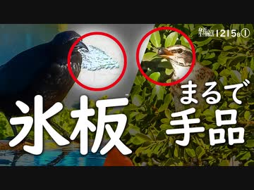 1215B①【氷を割るカラス】早食い手品なツグミ。ムクドリ大食いフードファイター。野鳥がセンダンとイヌツゲの実を食べる。小さな猛禽モズの狩り。霜柱。鶴見川水系恩田川でコンデジ野鳥撮影。#身近な生き物語