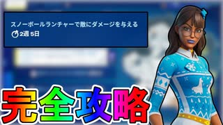 ウィンターフェストクエスト「スノーボールランチャーで敵にダメージを与える」完全攻略!!チャレンジ場所達成方法まとめ解説!!【入手方法】【解説】【無料】【フォートナイト/Fortnite】