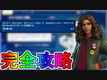 ウィンターフェストクエスト「コンドー・キャニオン、グリーシー・グローブ、またはスリーピー・サウンドでおもちゃのバイプレーンを収集する」完全攻略!【入手方法】【無料】【フォートナイト/Fortnite】