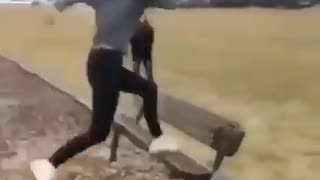 女 vs ベンチ
