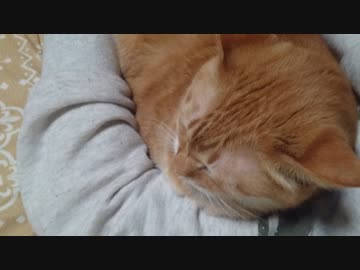 拾いねこ@生後3454/3421日目 喉元に食いつかれるアコさん。