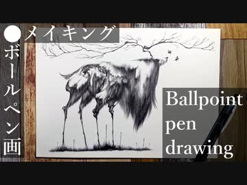 枝鹿 - その2 - 【ボールペン画メイキング】- Ballpoint pen drawing -