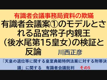 有識者会議事務局資料の欺瞞 有識者会議案①のモデルとされる品宮常子内親王(後水尾第15皇女)の検証と反論 有識者会議批判 その5 川西正彦