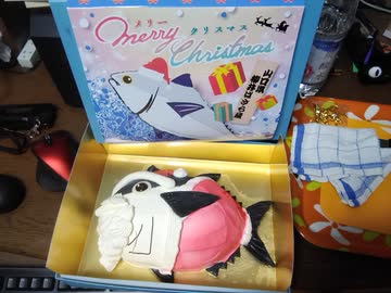 可愛いサンタなマグロを食べる