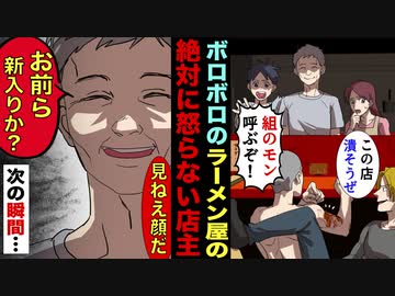 【漫画】ボロボロのラーメン屋でDQN「クソマジい!組のモン呼ぶぞ!」絶対に怒らない温厚な店主「お前らどこの組だ?」DQN「え?」→次の瞬間…【スカッとする話】【マンガ動画】