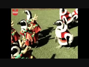 ホモと見る サンタとトナカイのコスプレ衣装を着たペンギンたち