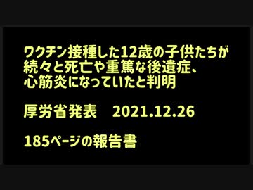 ワクチン接種した12歳の子供たちが続々と死亡や重篤な後遺症、心筋炎になっていたと判明 厚労省発表2021.12.26