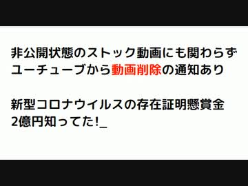 非公開状態のストック動画にも関わらず ユーチューブから動画削除の通知あり 新型コロナウイルスの存在証明懸賞金 2億円知ってた!_