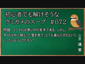 【ウミガメのスープ】 初心者でも解けそうなウミガメのスープ 【水平思考クイズ】 #072 「苦手な寒さを喜ぶ」