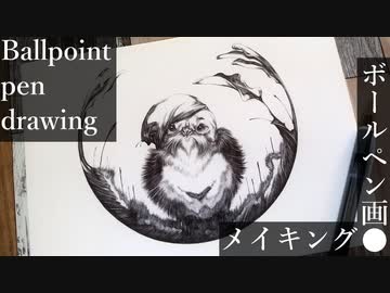 鳥 - その13 -【ボールペン画メイキング】- Ballpoint pen drawing -