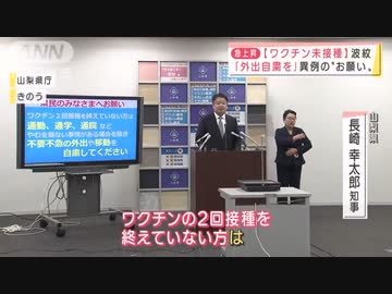 山梨県の長崎幸太郎知事がワクチン未接種者に対し外出自粛を要請(山梨県知事055-237-1111)