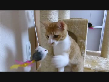 初めてのキャットタワーで宿敵ネズミに立ち向かう猫