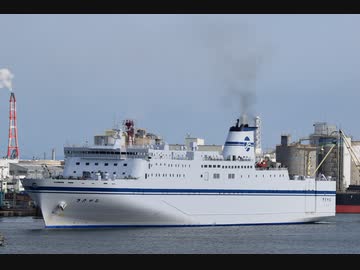 真昼間に仙台港を出港する太平洋フェリーきたかみ
