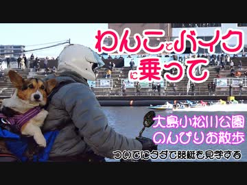 モンキー125に乗って、しっぽ付きコーギーと大島小松川公園を散歩する。ついでに、タダで江戸川競艇を見物する。