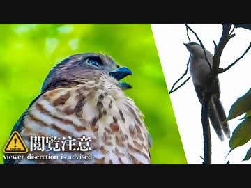 小さな鷹ツミの巣立ち雛がオナガに襲われる→逃げて母も帰ってきた