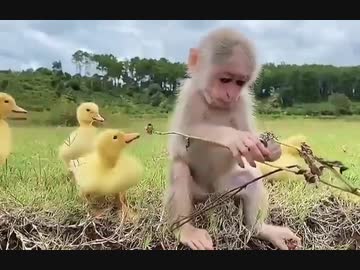 ホモと見る 映画のワンシーンのようなサルとアヒルの友情
