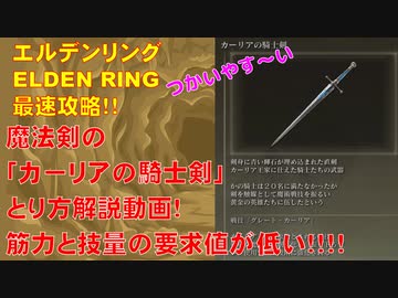 エルデンリング最速攻略!魔法剣の「カーリアの騎士剣」とり方解説動画!筋力と技量の要求値が低い!!![ELDEN RING攻略動画]