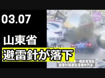 山東省 避雷針(球体)が落下し車に直撃