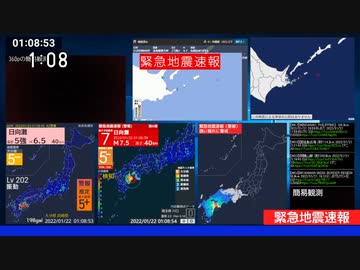 [緊急地震速報]2022.01.22 AM 1:08 日向灘(最大震度5強 Mj6.6)