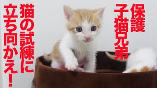 ちび保護子猫兄弟、猫の試練に立ち向かう