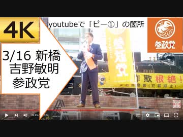 【4K】(youtubeピー①)03.16 #参政党 #吉野敏明 #よしりん #新橋 #街頭 #演説