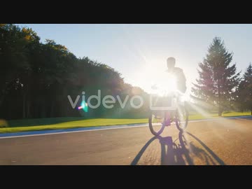 Silhouette Teenager Goes On A Flat Road Against The Setting Sun 沖田清