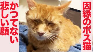 かつてない悲しい顔で鍼を受けるボス猫