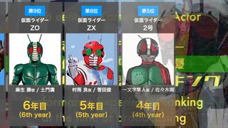 【1号〜J】昭和仮面ライダーシリーズ歴代ライダー俳優 放送開始時 芸歴ランキング一覧まとめ□【昭和ライダー】