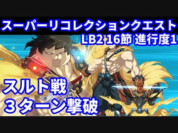 【FGO】スーパーリコレクションクエスト LB2 第16節 進行度1 超人オリオンで3ターン攻略 令呪なし【Road to 7 Lostbelt No.2 スルト戦】