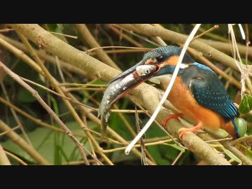 【魚を丸呑み】カワセミの求愛給餌と鳴き声、捕食