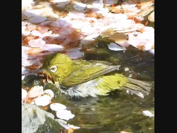 桜風呂の緑の鳥