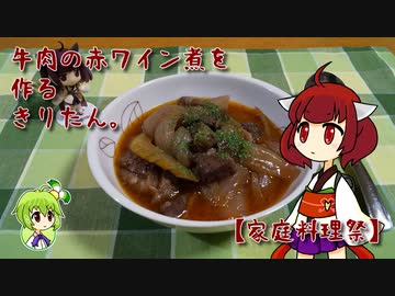 牛肉の赤ワイン煮を作るきりたん。【家庭料理祭】