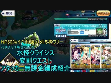 【FGO】カメノテ島変則クエスト無課金アタッカー編成紹介!【水怪クライシス】