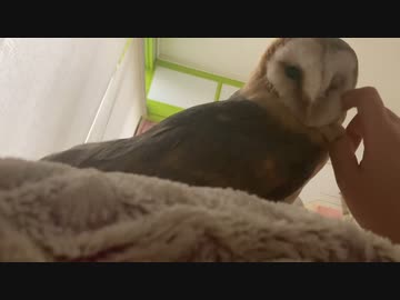お腹の上に乗るメンフクロウ
