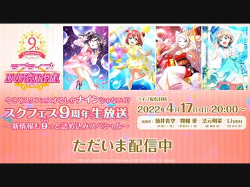 2022/04/17(日) 今こそスクフェスするしかナインじゃない⁉スクフェス9周年生放送 ~新情報も9(きゅう)っと詰め込みスペシャル~