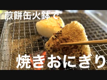 煎餅缶火鉢で焼きおにぎり焼いてみました。