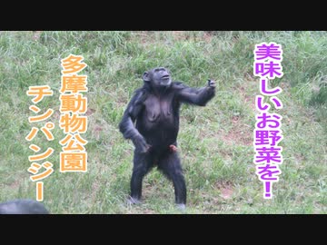 美味しいお野菜を!チンパンジー(多摩動物公園)